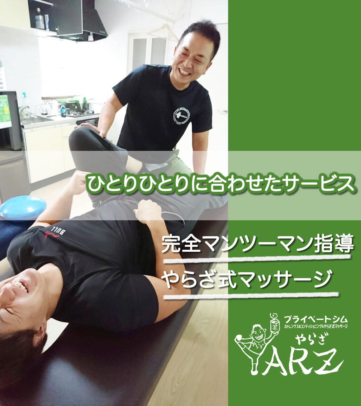 パートナーストレッチと指圧・整体などを一人ひとりに合わせて施していくりが、やらざ式マッサージです。